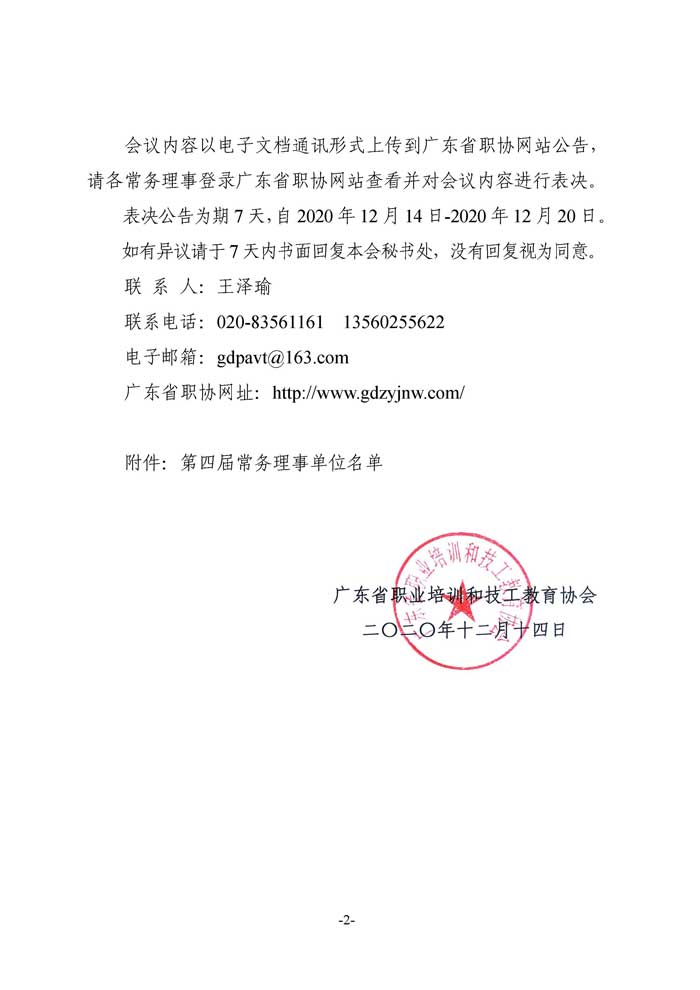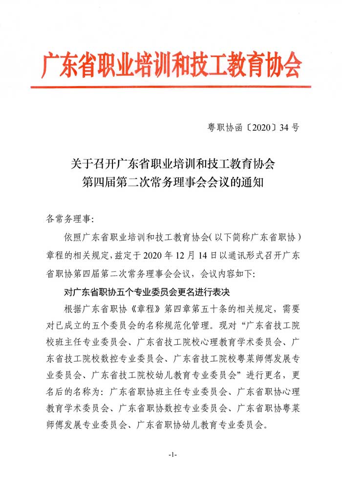 關于召開廣東省職業(yè)培訓和技工教育協(xié)會第四屆第二次常務理事會會議的通知
