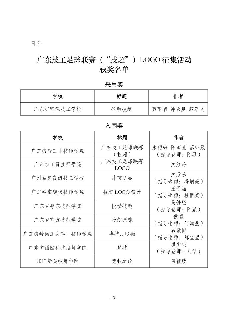 關(guān)于公布“廣東技工足球聯(lián)賽(技超)”徽標(biāo)(LOGO)征集活動(dòng)結(jié)果的通知