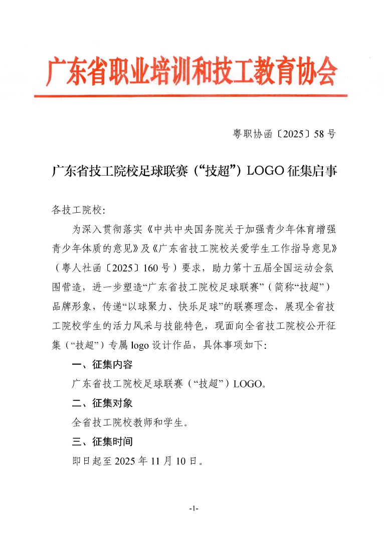 廣東省技工院校足球聯(lián)賽(“技超”)LOGO 征集啟事