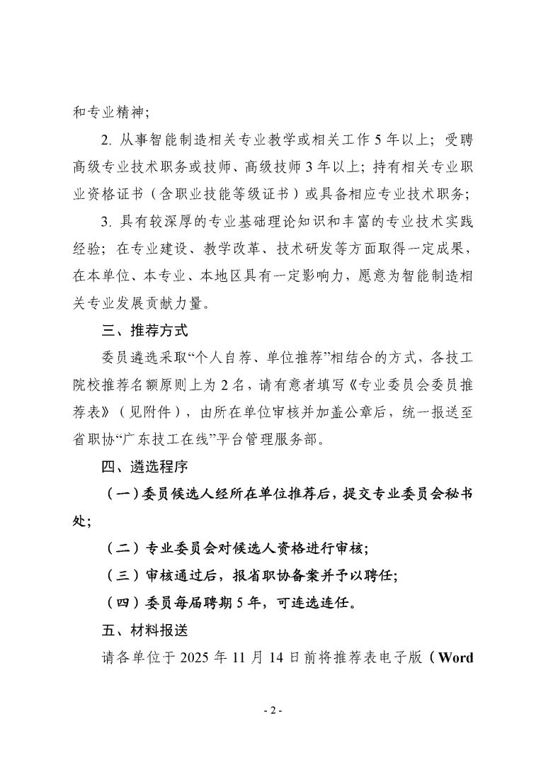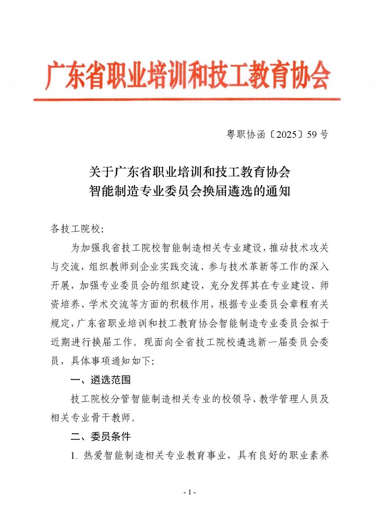 關于廣東省職業(yè)培訓和技工教育協會智能制造專業(yè)委員會換屆遴選的通知