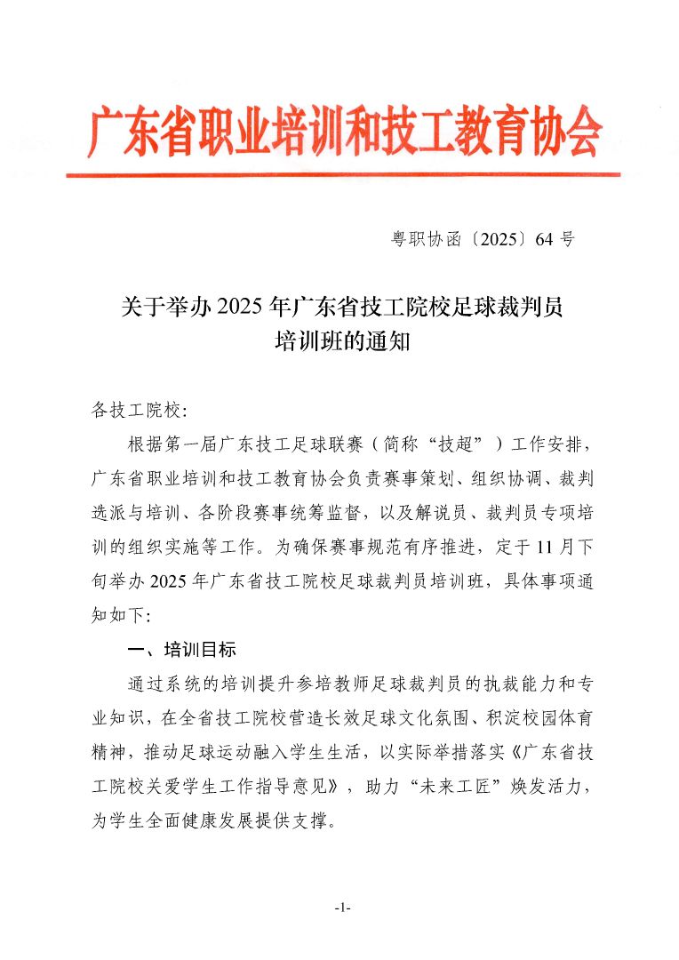 關(guān)于舉辦2025 年廣東省技工院校足球裁判員培訓(xùn)班的通知